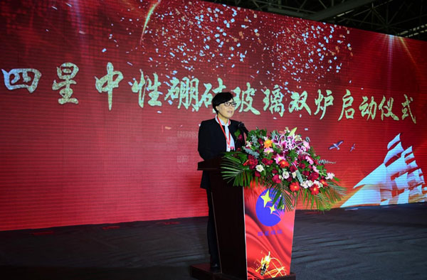 5號(hào)窯爐采用的是行業(yè)領(lǐng)先的“全電熔維洛法”熔化拉管技術(shù),實(shí)現(xiàn)了從配料到投料、從熔化到拉管、從檢測(cè)到包裝入庫的全過程智能化生產(chǎn);谒男枪臼嗄曛行耘鸸璨Aa(chǎn)經(jīng)驗(yàn)的提煉與升華,5號(hào)中性硼硅玻璃窯爐集合了第一、二、三、四座窯爐的精華,規(guī)避了原有窯爐的不足,其熔化質(zhì)量較前四座窯爐更具優(yōu)勢(shì),玻管顏色比以前也會(huì)有很大的提升與改進(jìn),完全能夠滿足高端客戶的特殊需求。并且,能夠多元化生產(chǎn)各品規(guī)、多用途的中性硼硅玻璃制品。 作為中國醫(yī)藥包裝協(xié)會(huì)推薦認(rèn)可的國內(nèi)藥用玻璃包裝制造領(lǐng)域領(lǐng)軍企業(yè),四星公司也是擁有完全知識(shí)產(chǎn)權(quán),全部采用自有技術(shù),能規(guī);可a(chǎn)藥用中性硼硅玻璃的高新技術(shù)企業(yè)。如今,5號(hào)窯爐的成功點(diǎn)火對(duì)于四星公司意義重大,意味著四星公司在醫(yī)藥包裝行業(yè)又邁上了一個(gè)新的臺(tái)階。 本次項(xiàng)目啟動(dòng)由滄州高新區(qū)黨工委書記、管委會(huì)主任夏軍主持并講話。 河北省工業(yè)和信息化廳黨組書記、廳長龔曉峰,國家工信部原材料司建材處石琳,國家食品藥品監(jiān)督管理局原副局長張文周,中國醫(yī)藥包裝協(xié)會(huì)會(huì)長蔡弘,中國醫(yī)藥管理協(xié)會(huì)會(huì)長郭云沛,中國輕工業(yè)信息中心玻璃技術(shù)信息交流委員會(huì)張守和,中國生化制藥工業(yè)協(xié)會(huì)常務(wù)副會(huì)長胡文言,河北省醫(yī)藥協(xié)會(huì)會(huì)長劉驍悍,滄州市人民政府副市長尹衛(wèi)江,滄州市工信局局長時(shí)金青,滄州市發(fā)改委副主任張國慶,滄州市科技局局長桑金歌等領(lǐng)導(dǎo)出席,滄州四星玻璃的客戶代表及企業(yè)員工代表共同參加了本次項(xiàng)目的啟動(dòng)活動(dòng)。河北省工信廳,滄州市人民政府,滄州市高新技術(shù)開發(fā)區(qū)政府的領(lǐng)導(dǎo),行業(yè)協(xié)會(huì)領(lǐng)導(dǎo),四星玻璃董事長為點(diǎn)火儀式致辭。