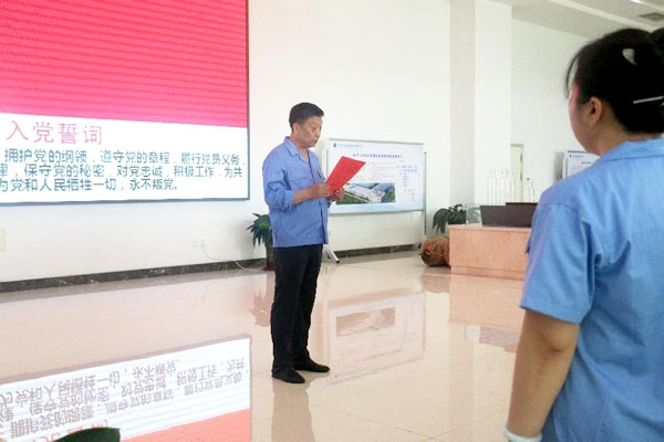 黨支部書記、董事長王煥一,支部副書記、行政副總李蘭舟, 公司顧問王建民,副總經(jīng)理范俊英,副總經(jīng)理王錦松,公司總工程師王希偉,公司顧問段玉新等黨員領(lǐng)導(dǎo)干部,公司全體黨員、部分提出入黨申請的積極分子等110人參加或列席活動。李蘭舟主持儀式。